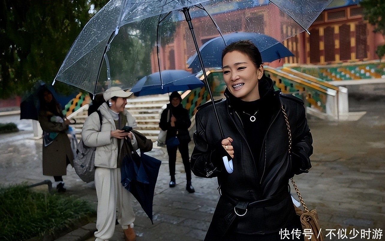 此前几天,有网友在北京公园偶遇巩俐,当时她身穿黑色皮衣,随性自在,状态极其年轻,比起此次晚宴的装扮,至少减龄十岁以上。