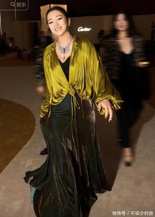 久未公开露面的巩俐身穿芥末绿色上衣,内搭黑色吊带长裙,颈间佩戴的大颗珠宝几乎铺满整个胸前区域,奢华却不张扬。