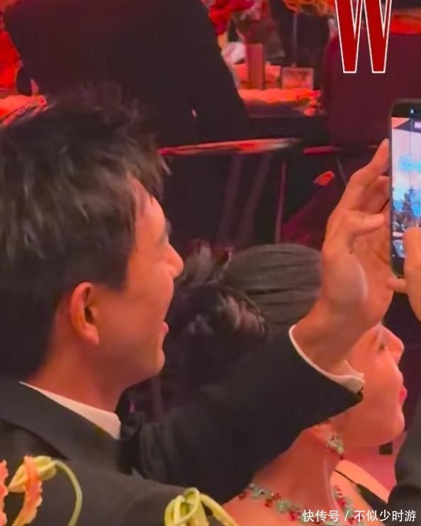 现场镜头捕捉到李现全程咧嘴大笑,手里举着手机不停拍摄录像,满脸写着“太精彩了”。坐着还不觉得突兀,一站起来画风突变——他的西装造型让人恍惚回到了去年。
